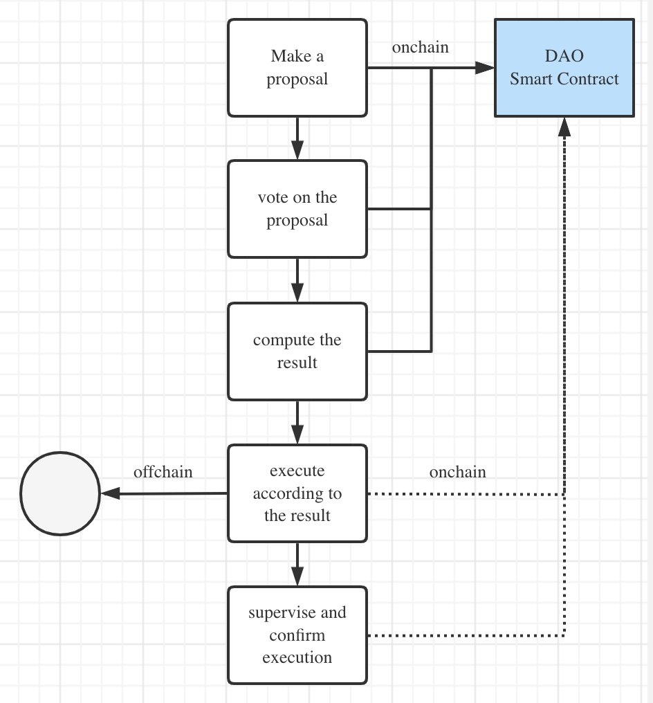 In a world of decentralization, technologies and products need to be constantly discussed and improved, and the entire community needs to interact in order to decide how to appropriately incentivize those who contributes and if possible, to penalize those who seek to damage or otherwise cause harm to the ecosystem. This requires that both on-chain and off-chain activities take place in an orchestrated manner. It is of paramount importance to make sure this type of governance adheres to the decentralization principle by getting all stakeholders within the ecosystem to freely participate by making proposals, voting/approving the proposal and executing both on-chain and off-chain.